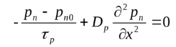 Пусть в образце n-типа избыточные носители инжектируются с одной стороны образца, при этом напряжение смещения отсутствует. В этом случае мы имеем одномерное уравнение непрерывности: