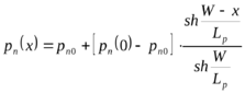 Уравнения (6.30)-(6.32) будут широко использоваться при анализе процессов в таких полупроводниковых приборах, как биполярные транзисторы и диоды. Причем для p – области будем использовать уравнение для неосновных носителей – электронов, для n – области для дырок. Уравнение для носителей противоположного знака решать не будем, полагая, что соблюдается условие квазиэлектронейтральности и Δp=Δn.