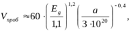 Напряжение лавинного пробоя кремниевого pn-перехода с линейным распределением примеси (то есть при изменении примеси по линейному закону) определяется формулой: