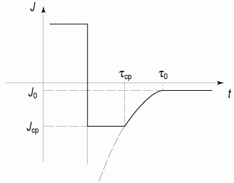 В момент t=0 величина обратного тока будет бесконечно большой. Физическим ограничением для этого тока будет служить максимальный ток, который может протекать через омическое сопротивление базы диода rб при обратном напряжении Vсм. Величина этого тока, называемого током среза, Iср равна: