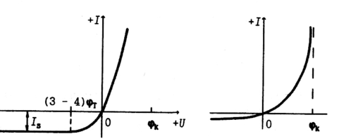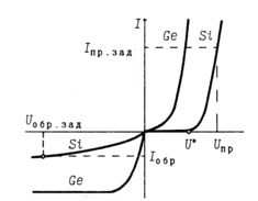 ВАХ такого идеализированного выпрямляющего устройства можно охарактеризовать значениями обратного тока и прямого напряжения. Реальные ВАХ диодов представлены на рис. 14.2.