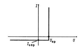 На прямом участке ВАХ диода дифференциальное сопротивление невелико и составляет значение несколько Ом. На обратном участке ВАХ диода дифференциальное сопротивление rd стремится к бесконечности, поскольку в идеальных диодах при обратном смещении ток не зависит от напряжения.