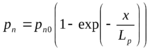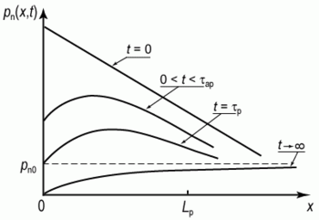 При прямом смещении диода на основе несимметричного pn-перехода происходит инжекция неравновесных дырок в базу диода. Изменение во времени и пространстве неравновесных инжектированных дырок в базе описывается уравнением непрерывности: