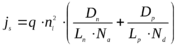Величина обратного тока в первый момент после переключения будет существенно больше, чем ток насыщения диода. Это происходит потому, что обратный ток диода обусловлен дрейфовой компонентой тока, а ее величина в свою очередь определяется концентрацией неосновных носителей в базе, определяемых выражением: