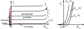 На ВАХ можно выделить три области, соответствующие различным режимам работы транзистора: активную область, область насыщения и область отсечки.