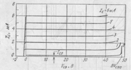 При UБЭ=0 и отрицательном напряжении на коллекторе (Uкб<<0) (т. 0 рис. 15.15) ток через ЭП равен нулю, через коллекторный переход протекает ток экстрагированных из коллектора дырок IКЭ0.