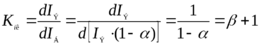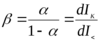 Коэффициент α/(1-α) называется коэффициентом усиления по току биполярного транзистора в схеме с общим эмиттером. Обозначим этот коэффициент знаком β, итак:
