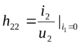 Система h-параметров используется как комбинированная система из двух предыдущих, причем из соображений удобства измерения параметров биполярного транзистора выбирается режим короткого замыкания на выходе (u2=0) и режим холостого хода на входе (i1=0). Поэтому для системы h-параметров в качестве входных параметров задаются ток i1 и напряжение u2, а в качестве выходных параметров рассчитываются ток i2 и напряжение u1, U1 = f1(I1, U2), I2 = f2(I1, U2), тогда: