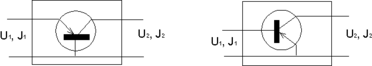 | Рис. 15.28 Схема транзистора как четырехполюсника а) биполярный транзистор в схеме с общим эмиттером; б) биполярный транзистор в схеме с общей базой |