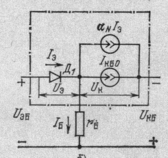 . При обратном смещении коллекторного перехода, особенно для кремниевых транзисторов, наряду с током насыщения коллектора должен быть учтен ток тепловой генерации носителей заряда в ОПЗ коллектора и ток утечки по поверхности коллекторного перехода (на рис. они учтены источником тока