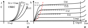3 – область открытого состояния (крутая часть ВАХ): ток Ic в этой области задается внешней цепью.