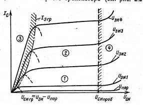 Переход с одного участка выходной ВАХ на другой происходит при достижении граничного значения напряжения стока: