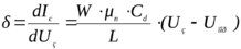 Откуда получим ток стока в линейной области характеристик при единичной глубине канала: