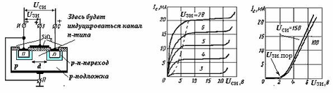 ). Стоковый ток тем выше, чем больше индуцированный в канале заряд и, соот Uзи<Uпор нет канала, Ic=0.