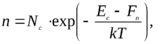 Состояние полупроводника становится неравновесным и концентрация электронов будет определяться квазиуровнем Ферми Fn(x). В глубине полупроводника положение уровня Ферми остается постоянным. Если положения квазиуровня Ферми отсчитывать от дна зоны проводимости, для концентрации электронов, исходя из (5.1), можно записать (5.1):