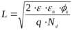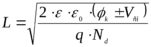Толщина слоя объемного заряда в случае термодинамического равновесия определяется соотношением