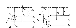 | Рис. 19.1. Контакт металл-полупроводник |
