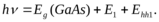 ) происходит из основного состояния в зоне проводимости (например, E1) в основное состояние в валентной зоне (например, Ehh1). Энергия перехода дается выражением: