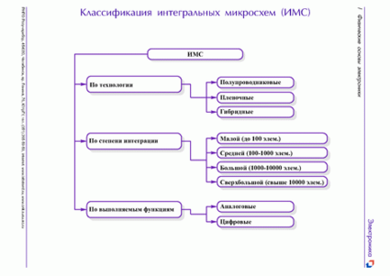 ИС самостоятельно выполняет законченную, часто весьма сложную функцию. ИС может рассматриваться не только как элемент с определенными параметрами, но и как устройство с определенной электрической схемой.