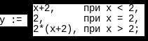 Для хранения переменных x и y выделим ячейки 100 и 101 соответственно. Программист сам определяет порядок размещения в программе трёх ветвей нашего условного оператора присваивания. Мы будем сначала располагать вторую ветвь (x=2), затем первую (x<2), а потом третью (x>2). На рис. 3.2 приведён текст этой программы.