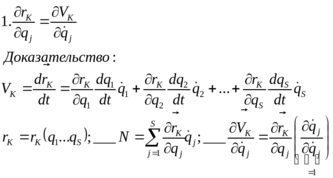 Применяя это уравнение, справедливое для любой совокупности независимы величин (q1, q2, …,qn), поочерёдно к таким их значениям когда одна только координата получает приращение, не равное 0, а приращение остальных координат берутся равными 0, т. е. другие координаты не изменяются, можно получить n таких уравнений