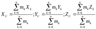 сли ввести декартовую систему координат, координаты центра масс будут характеризоваться следующими формулами:
