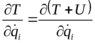налево с обратным знаком. Кроме того, что U зависит только от обобщённых координат, но не зависит от обобщённых скоростей, тогда:
