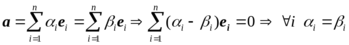 Теорема 1. Коэффициенты разложения по базису – единственны.