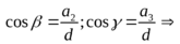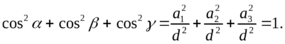 Теорема 2. Сумма квадратов направляющих косинусов равна единице: