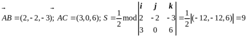 Пример. Вычислить S∆ABC , если даны тт. А(1,2,0), В(3,0,−3), С(5,2,6).