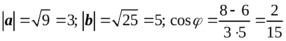 Пример. Вычислить длины векторов и косинус угла между ними: