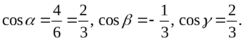 Пример. Найти направляющие косинусы вектора а = (4, −2, 4).