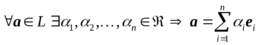 2) Любой вектор L  линейно выражается через базисные (т.е. является линейной комбинацией элементов е1, е2, … , еn):