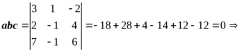 Пример. Исследовать векторы a = (3,1,−2), b = (2,−1,4) и c = (7,−1,6) на линейную зависимость.