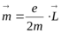 – момент импульса частицы создающей ток. В атоме мы имеем положительное ядро и электрон е, вращающийся по орбите, на самом деле, в своё время мы увидим, что эта картина не имеет отношения к реальности, так нельзя представлять электрон, который вращается, но остаётся то, что электрон в атоме обладает моментом импульса, и этому моменту импульса будет отвечать такой магнитный момент: