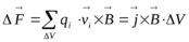 . Сила, действующая на все частицы в данном элементе объёма, определяется как плотность тока на магнитное поле и на величину элемента объёма. А теперь перепишем её в дифференциальном виде:
