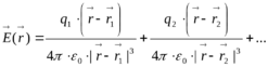 , тогда напряжённость поля, создаваемая системой точечных зарядов, в любой точке равна сумме напряжённостей, создаваемых каждым из зарядов. Я мог бы сразу написать