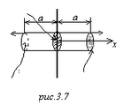 – единичный вектор вдоль оси x. В качестве замкнутой поверхности берём цилиндр, прорезающий плоскость с двумя крышками. Напряжённости поля показаны на рисунке.