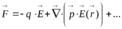 Кстати, легко понять, почему возникает сила, действующая на диполь. Скажем, поле создаётся положительным зарядом, имеем диполь, систему, состоящую из отрицательного заряда -q и положительного +q. Результирующая сила такая: