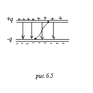 роцедура, например, такая: вот имеется однородное поле, я беру металлическую пластину и вдвигаю её в это поле перпендикулярно силовым линиям, работа при этом не совершается и ничего не происходит; вдвигаю ещё одну пластину таким же образом, тоже ничего не происходит, ну, правда, внутри проводящей пластины поле исчезает, на поверхности выступают заряды, но это ерунда. А теперь я беру проводничок к одной пластине, ключ и проводничок к другой, тоже невинное дело, ничего при этом не происходит. А когда я замыкаю ключ, что произойдёт? Эти две пластины соединяются, это один проводник, это означает, что их потенциалы должны уравняться. Вначале на одном проводнике был потенциал