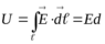 , между пластинами поля складываются, снаружи уничтожаются. Так как поле однородное, разность потенциалов равняется: