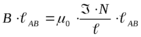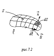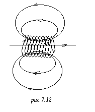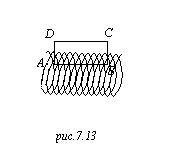 =const. Внутри длинного соленоида, ну, в окрестности. Скажем, его середины, магнитное поле практически однородно, а вне соленоида это поле мало. Тогда мы можем найти это магнитное поле внутри следующим образом: вот я беру такой контур (рис.7.13), а теперь пишем: