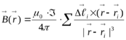 усть мы имеем произвольный проводник с током, и нас интересует магнитное поле, создаваемое куском этого проводника в данной точке. Как, кстати, в электростатике находили мы электрическое поле, создаваемое каким-то распределением заряда? Распределение разбивали на малые элементы и вычисляли в каждой точке поле от каждого элемента (по закону Кулона) и суммировали. Такая же программа и здесь. Структура магнитного поля сложнее, чем электростатическое, кстати, оно не потенциально, замкнутое магнитное поле нельзя представить как градиент скалярной функции, у него другая структура, но идея та же самая. Разбиваем проводник на малые элементы. Вот я взял маленький элемент
