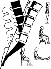 В положении сидя выравниваются лордозы и увеличиваются кифозы, т.е происходит нарушение нормального расположения позвонков относительно друг друга. Поскольку при этом наблюдается и изменение положения плечевого пояса одно плечо выше- другое ниже,. изменение тазовых костей при сидении нога на ногу , то и напряжение мелких мышц позвоночника также будет различным, с одной стороны больше, а с другой - меньше