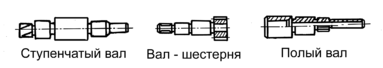 1. Конструктивные разновидности - ступенчатые, фланцевые, гладкие. Шейки валов имеют шпоночные пазы (шлицы) или резьбу; в местах перехода ступеней канавки или галтели. Валы с соотношением L/d<15 - жесткие, и наоборот - нежесткие. Валы могут иметь центральное отверстие.