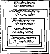 На рисунке 1 схематически показаны усложняющиеся качества систем. Перечисленные в порядке усложнения R, I, С, A, L — качества, условно изображены в виде системы вложенных прямоугольников. Данное графическое представление рассматриваемых качеств систем логически означает следующее: система, обладающая данным качеством (например, С — качеством), имеет и все другие более простые качества (I и R — качества), но не имеет качеств более высокого порядка (А и L — качеств).