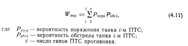 Таким способом вычисляется обобщенная по условиям обстрела вероятность поражения танка одним противотанковым средством. Вычислив эти вероятности для всех средств, имеющихся у противника, можно найти значение обобщенного показателя оценки защищенности танка