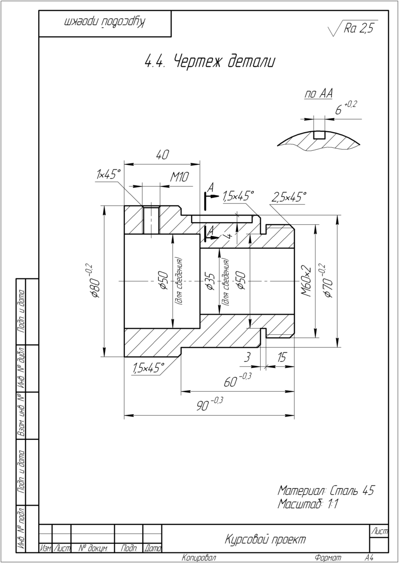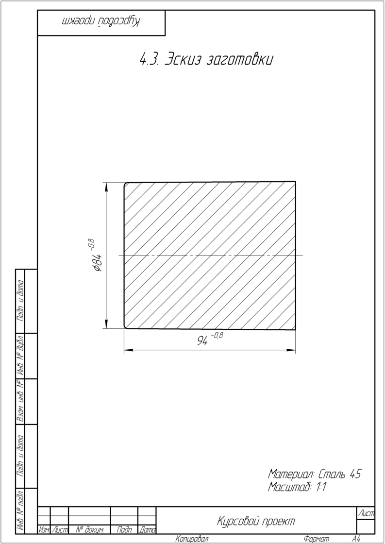 Поскольку материал обрабатываемой детали – сталь 45, целесообразно выбрать штамповку как способ получения заготовки. При штамповке получаем припуски на обработку 2-4 мм и уклоны . Заготовка получается цилиндрической формы. В полученной штамповке просверливается отверстие диаметром Ø31 мм для возможности размещения заготовки на платформе тактового стола. Масса заготовки: ; .
