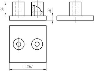 Т актовый стол, используемый в данном РТК, представляет собой горизонтально замкнутый тележечный грузонесущий конвейер с настольным пульсирующим (тактовым) перемещением платформ, предназначенный для подачи заготовок и приема готовых деталей. Габаритные размеры тактового стола (длина ширина высота): 3650 1800 1200 мм. Разгрузка платформ осуществляется в автоматическом цикле с использованием промышленного робота. На каждой платформе установлена паллета с приспособлением, позволяющим расположить на ней 2 детали на специальных штырях (рис. 5). Учитывая, что среднее время обработки одной детали составляет приблизительно 5 минут, а количество платформ с паллетами 24, обеспечивается бесперебойная работа РТК в течение около 4 часа (выпуск 48 деталей).