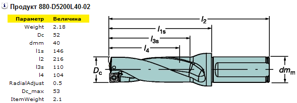 Для сверления отверстия выбираем сверло со сменными пластинами CoroDrill 880 (рис. 5).